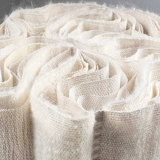Bufandas y chales de fibras naturales tejidas a mano en telares artesanos