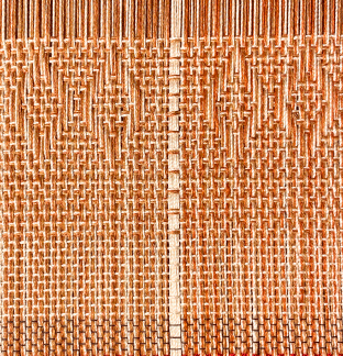 Dos orillos por pieza, cada pieza está tejida de una vez, no hay orillo o bordes recortados. Esto se puede comprobar, puedes fijarte en los bordes, mira si hay una puntada de zig-zag a lo largo, normalmente con hilatura muy fina sobre los hilos recortados que tendrán estos bordes, si la tiene, es la señal inequívoca de que se trata de una producción mecanizada o industrial, dónde se teje todo el ancho y después se recortan las piezas que entren en ese ancho total.