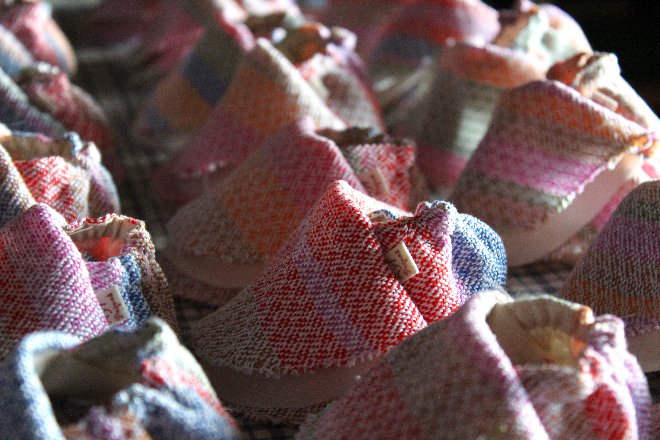 Algunas de nuestros tejidos, además de tejerlos en nuestro taller, los presentamos cofeccionados para distintos usos como prendas y complementos de moda, y ropa y complementos de hogar. Es el caso de las chaquetas, kimonos, bolsos, zapatitos de bebés, cojines, puf, cortinas, manteles, etc. Igualmente cortamos y cosemos a máquina y a mano según el diseño y las necesidades de acabados de cada pieza, en nuestro propio taller..