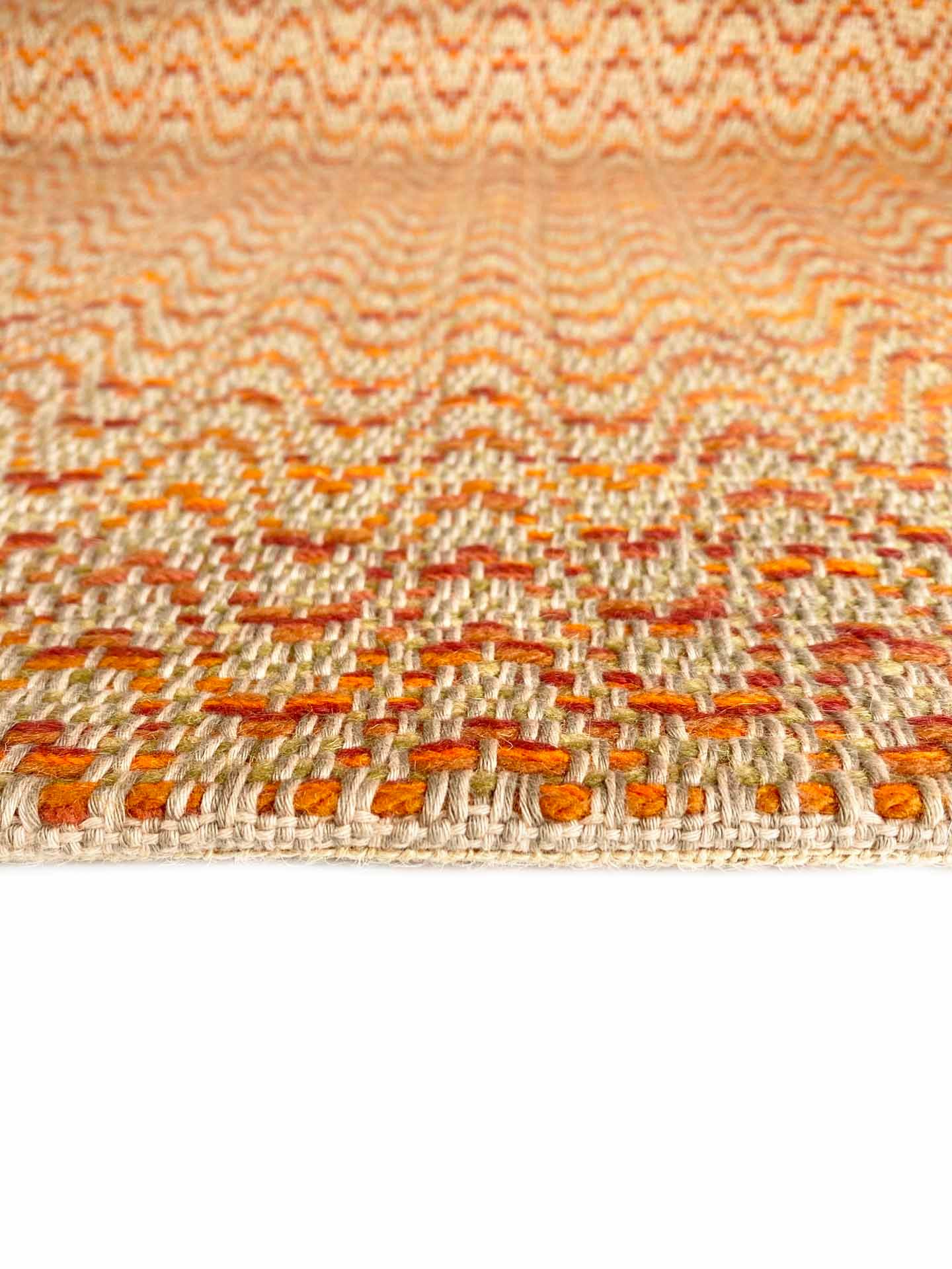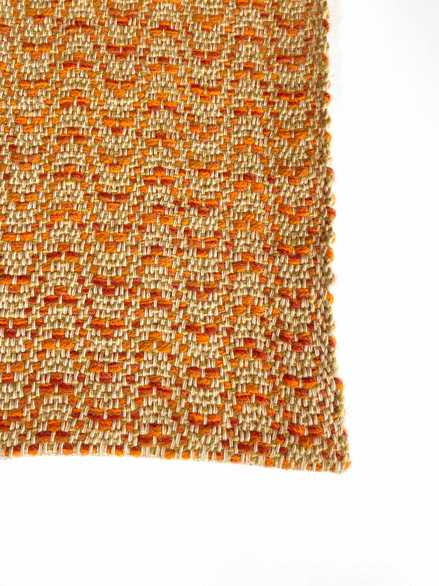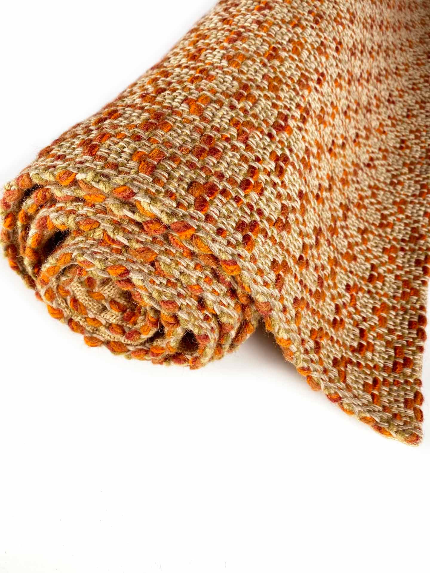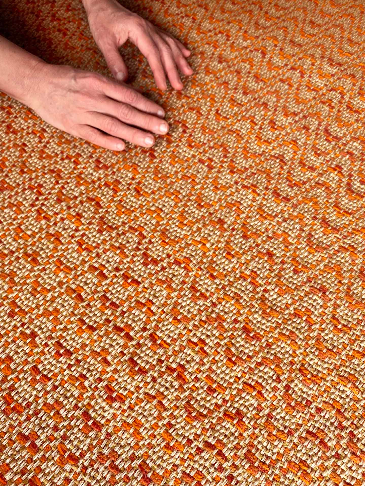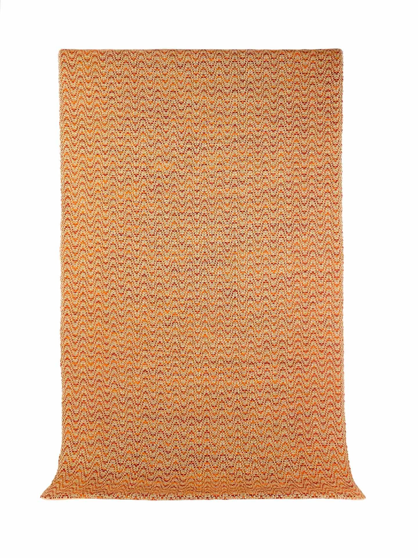 Esta alfombra de lana y algodón tejida a mano en telar, es suave, cálida, confortable y resistente. Las hemos tejido con lana que retiene muy bien el calor, su tacto es denso invitando a pisar, sobre todo descalzos. Es una alfombra muy versátil. Hemos tejido en varios tonos de naranja con varias hebras, para que pueda combinar con diferentes estilos de decoración, adaptándose al mobiliario que acompañe, creando un ambiente acogedor, diferente y único. Podemos tejerla bajo pedido personalizado, en medidas y colores para que se adapten lo mejor posible a tu gusto. Consúltanos.