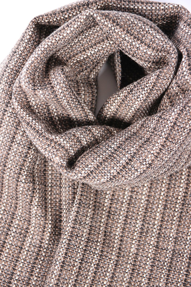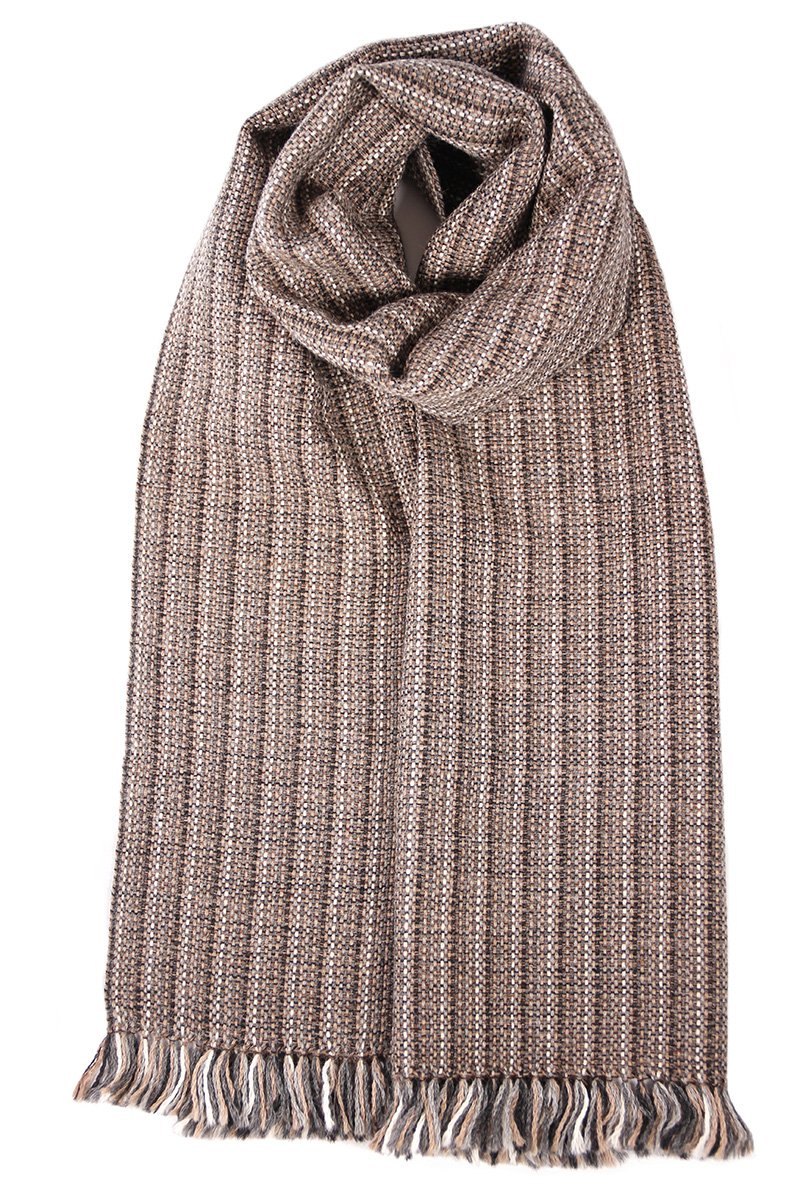 Esta bufanda de alpaca es un clásico, sobria, elegante o informal según la combines. Su tacto es suave y muy agradable, sin ser voluminosa es muy abrigada por las características de la fibra de alpaca, que tiene una capacidad calorífica muy alta en relación a su peso, entre otras. Combina con muchos estilos y la podemos llevar de varias formas. Queda muy bien con abrigos o chaquetas, su tamaño, ancho y largo, hace que sea muy cómoda de llevar, todo el invierno. Los flecos los hemos dejado cortos, con un trabajo de vainica hecho a mano en el telar que le da un aspecto de sencillez y elegancia. Para los amantes de las bufandas muy abrigadas, cómodas, combinables y atemporales.