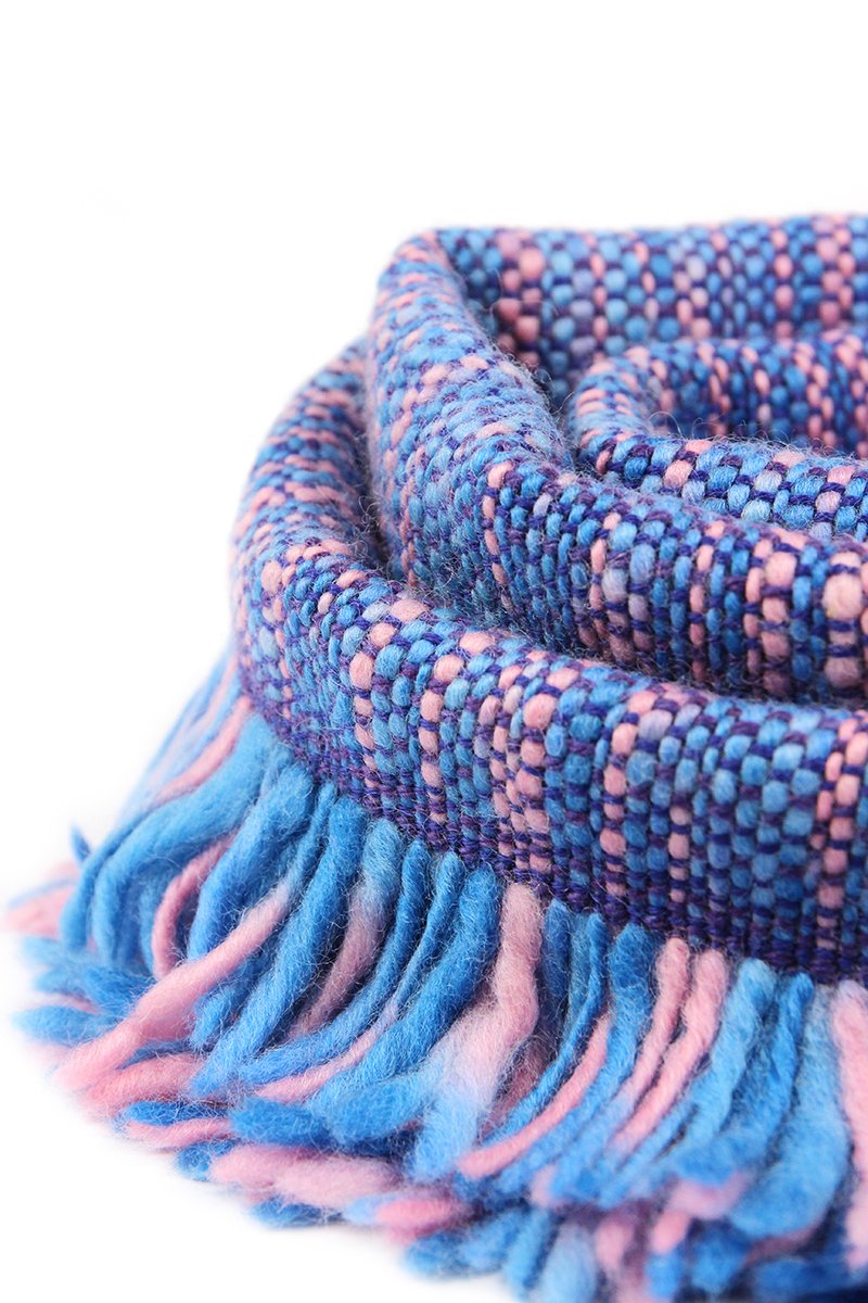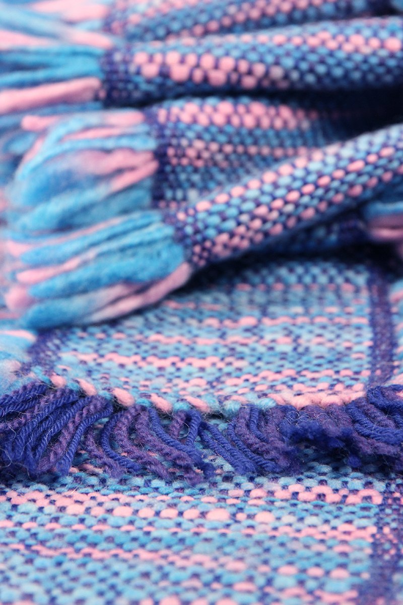 Bufanda de lana merino tejida a mano en telar. Clemátides. (Azul, lila, celeste y rosa).