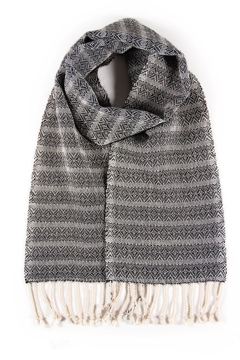 Bufanda de seda y alpaca tejida a mano en telar. Esta bufanda es sofisticada, elegante, atemporal y combinable. Cuenta con las ventajas de las dos fibras, la seda le aporta suavidad, es termo-reguladora y tiene un brillo sutil único y la alpaca le suma calidad y calidez, siendo muy agradable al tacto suave, flexible y de cuerpo ligeramente denso. Es una bufanda excepcional, extra suave y agradable, ligera y abrigada al mismo tiempo. Muy versátil y combinable, En tonos naturales, queda bien con muchos estilos, con abrigos, chaquetas, camisas…o con cualquier otra prenda. Es muy cómoda de llevar, como una caricia. Los flecos los hemos torcido y anudado para tenerlos siempre ordenados y conseguir un aspecto más elegante. Para los amantes de las bufandas ligeras, abrigadas, suaves, sofisticadas y atemporales.