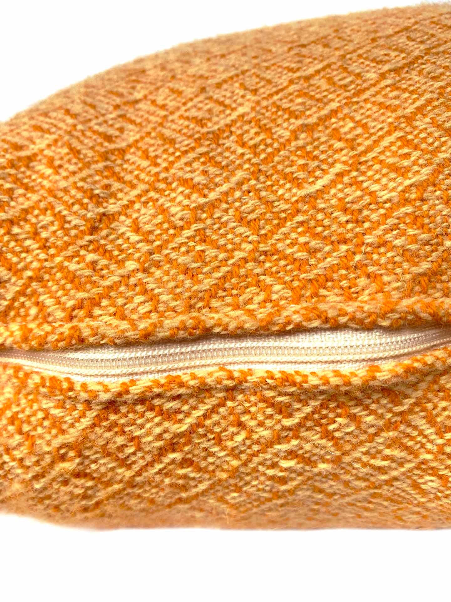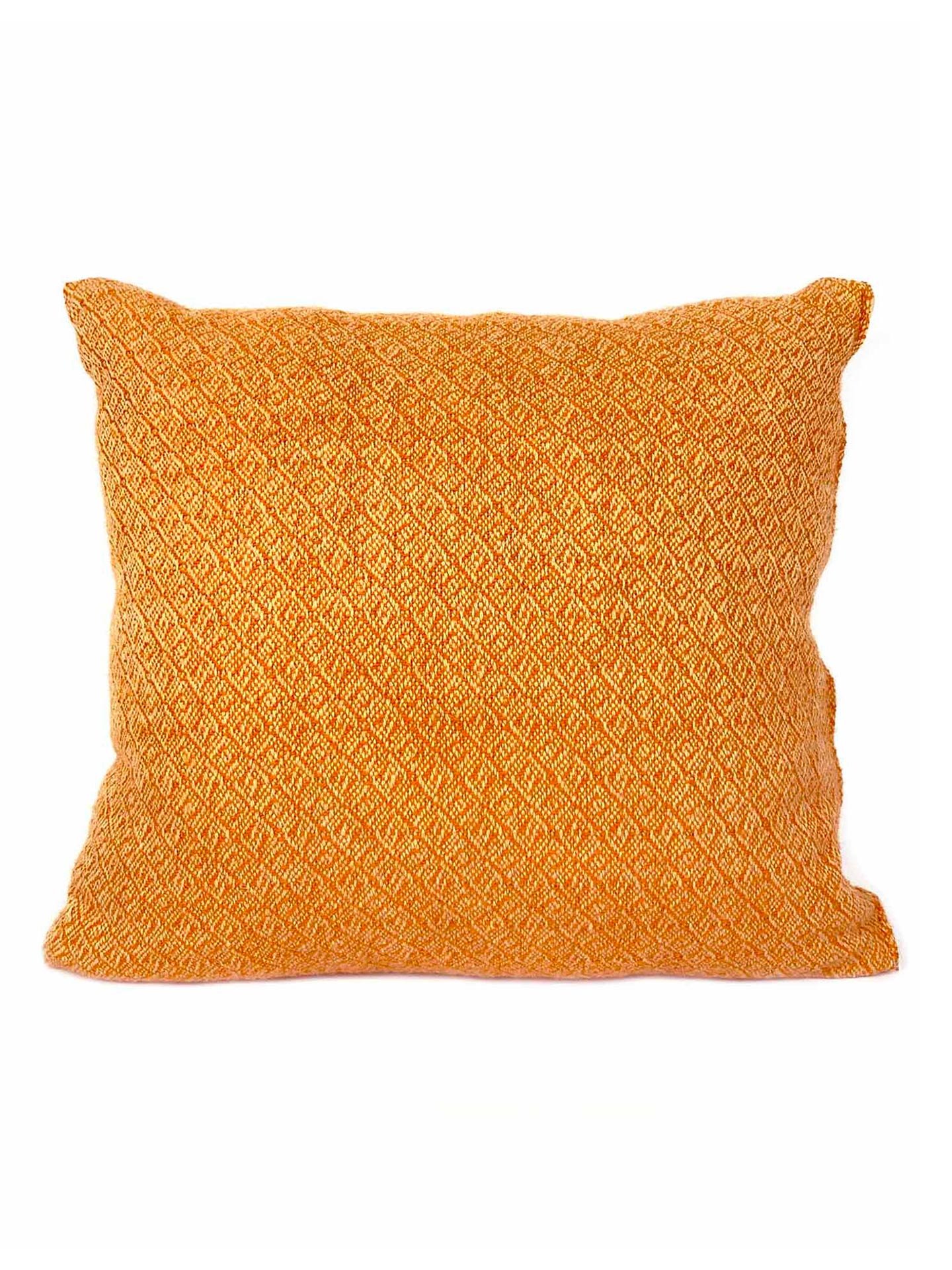 Cojín de lana merina tejido a mano en telar. Estos cojines son suaves, mullidos y muy confortables. Tejidos con lana merina natural y lana merina teñida, estos cojines nos animan y ayudan a descansar. La lana mantiene el calor de la espalda y son muy reconfortantes. Son cojines muy versátiles y combinables con muchos estilos de decoración diferentes, para un sofá, un sillón, una cama… Se pueden combinar con las mantas. El tejido es de densidad media y tiene una capacidad calorífica alta.