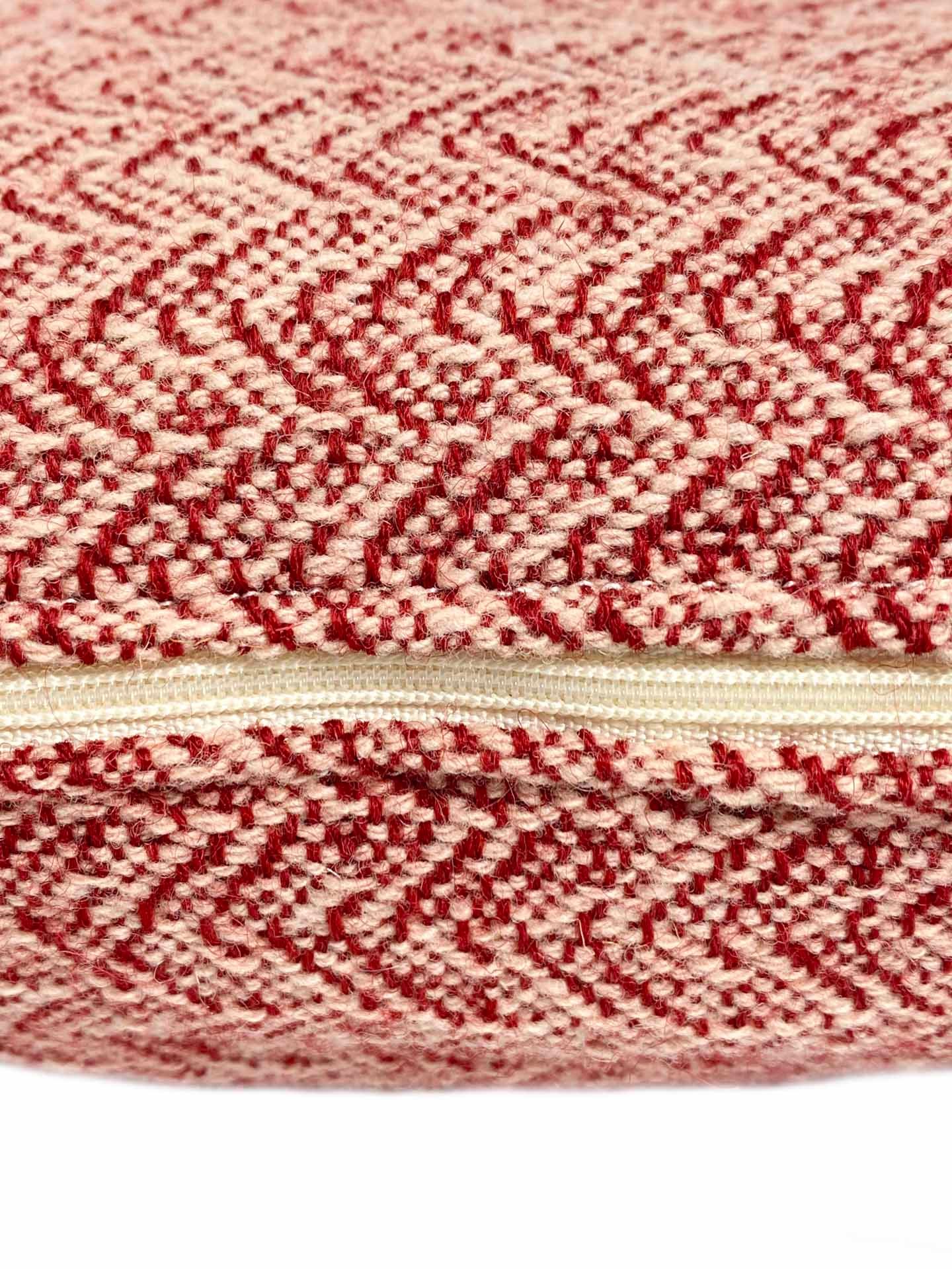 Cojín de lana merina tejido a mano en telar. Estos cojines son suaves, mullidos y muy confortables. Tejidos con lana merina natural y lana merina teñida, estos cojines nos animan y ayudan a descansar. La lana mantiene el calor de la espalda y son muy reconfortantes. Son cojines muy versátiles y combinables con muchos estilos de decoración diferentes, para un sofá, un sillón, una cama… Se pueden combinar con las mantas. El tejido es de densidad media y tiene una capacidad calorífica alta.