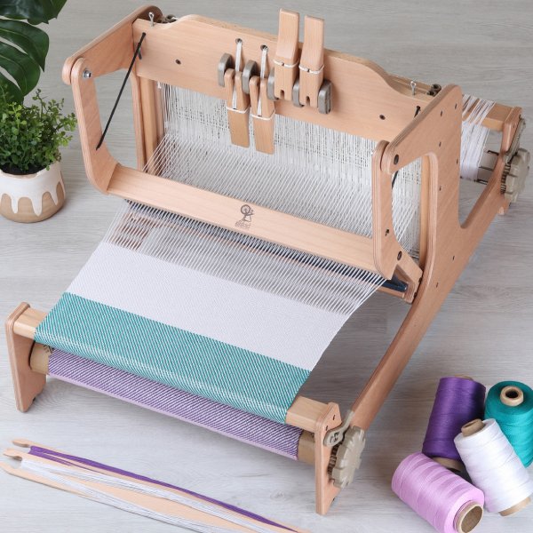 Telar de palancas de 4 lizos Brooklyn de Ashford de 40 cm, este telar ha sido diseñado para poder empezar a tejer en un telar de lizos, adentrándote en el tejido a mano en telares de bajo lizo, para crear tejidos sencillos y complejos de sarga, satén, camino de rosas, etcétera, donde el límite lo pones tú.