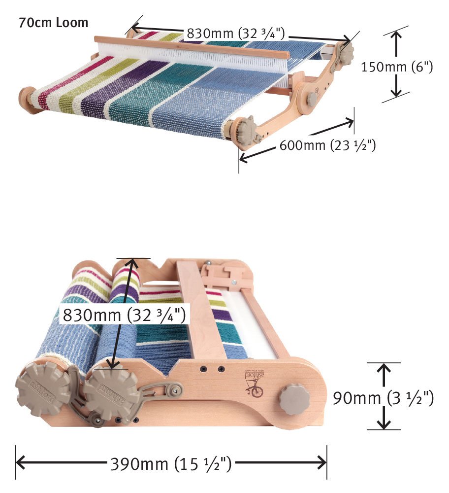 El Telar de peine rígido Knitters de Ashford de 70 cm, es el más amplio de los Knitters, diseñado para quienes desean trabajar piezas anchas en telares plegables, y cómodos. Su ancho permite trabajar bufandas, chales, piezas para el hogar y tejidos más amplios sin perder la comodidad de un telar plegable. Es un modelo versátil, fiable y muy valorado por quienes tejen en telares de forma continua.
